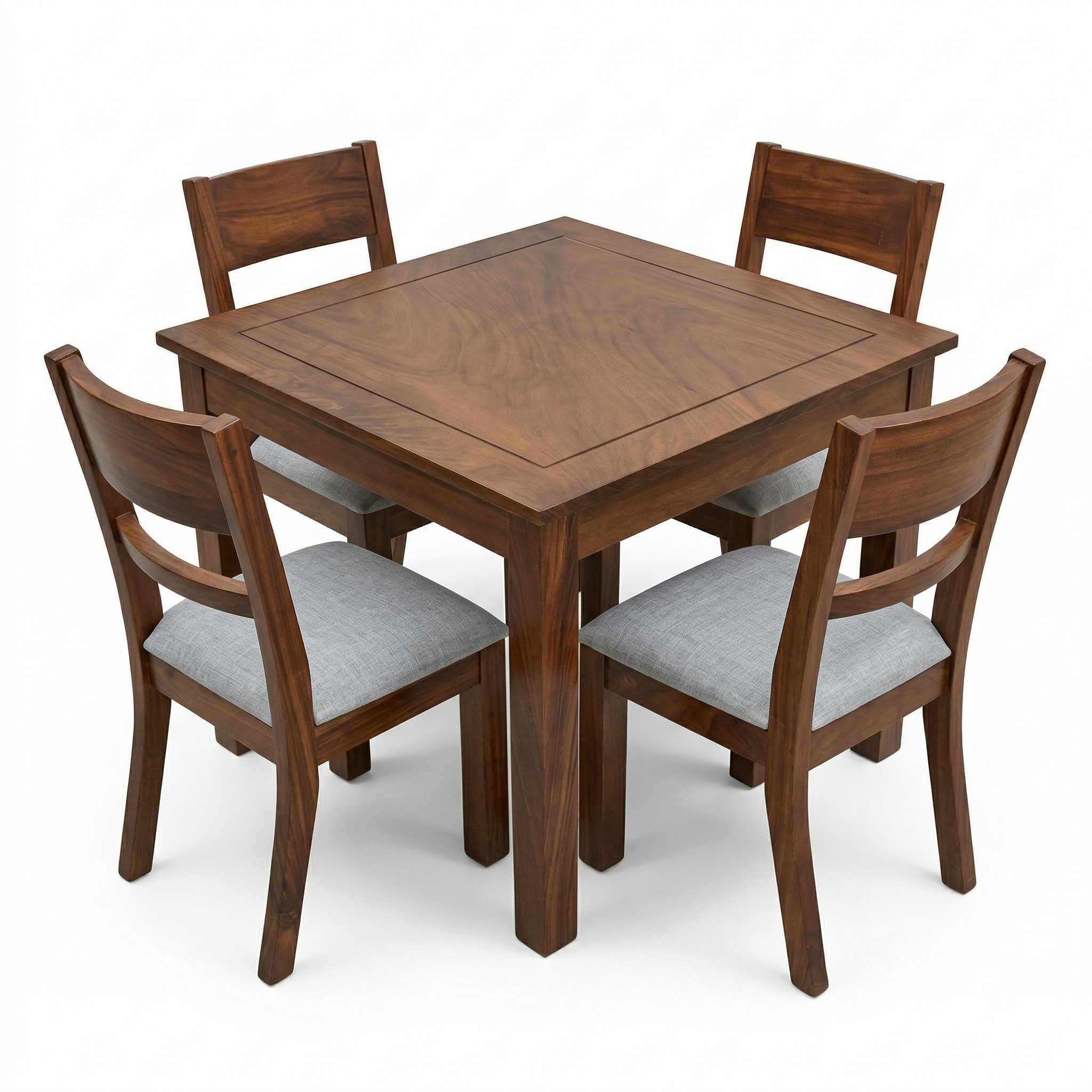 Renueva tu espacio de comidas con este hermoso y resistente juego de comedor. Fabricado con madera que resalta la belleza natural de sus vetas, este set combina a la perfección un diseño clásico con la comodidad moderna. Sus cuatro sillas cuentan con asientos tapizados en un tono neutro, ideales para brindarte el máximo confort durante esas largas sobremesas en familia o con amigos.