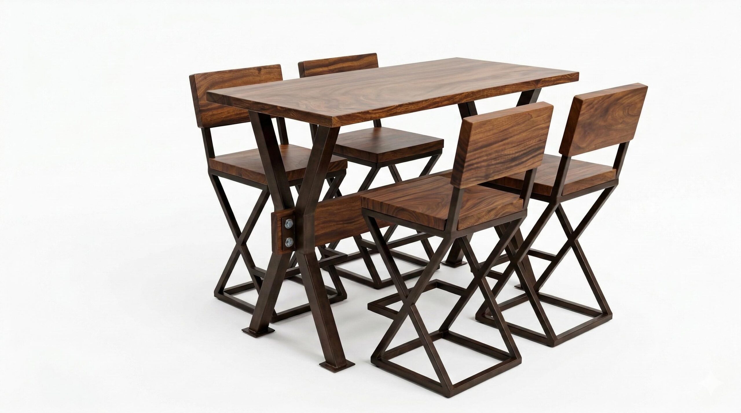 Aporta un carácter único a tu hogar con el Desayunador Vikingo, una pieza que equilibra perfectamente la calidez de la madera con la fuerza del diseño industrial. Su mesa rectangular de líneas limpias se complementa con sillas de diseño minimalista, resaltando la belleza natural del veteado de la madera en cada superficie. Este conjunto es ideal para espacios modernos que buscan funcionalidad sin sacrificar el estilo artesanal y robusto.