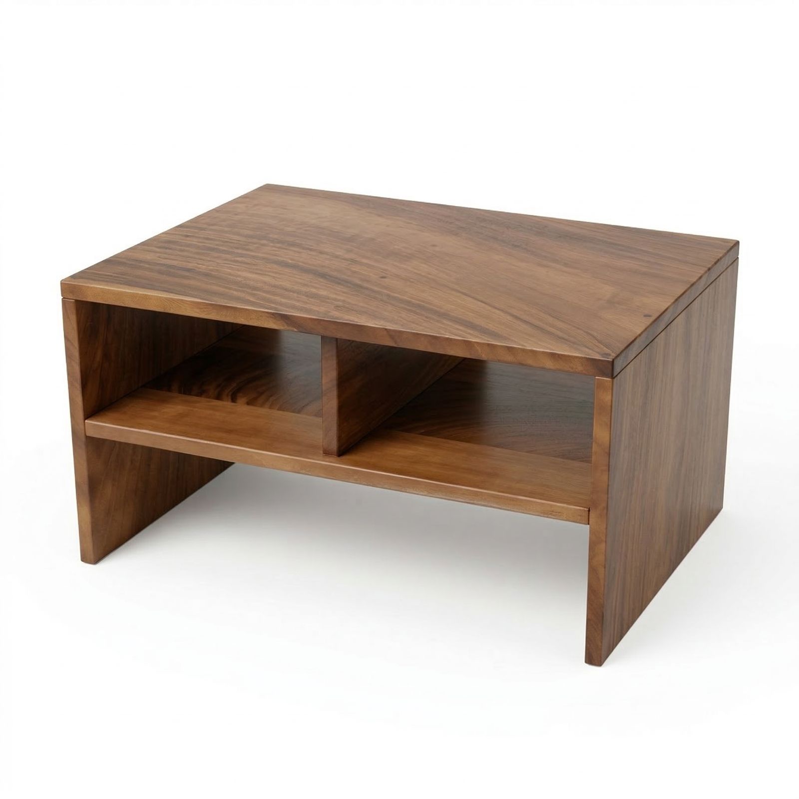 La Mesa de Centro es un complemento práctico y elegante para tu sala. Fabricada en madera sólida, destaca por sus vetas naturales y su diseño funcional que incluye un estante inferior dividido para organizar revistas, controles o accesorios decorativos.